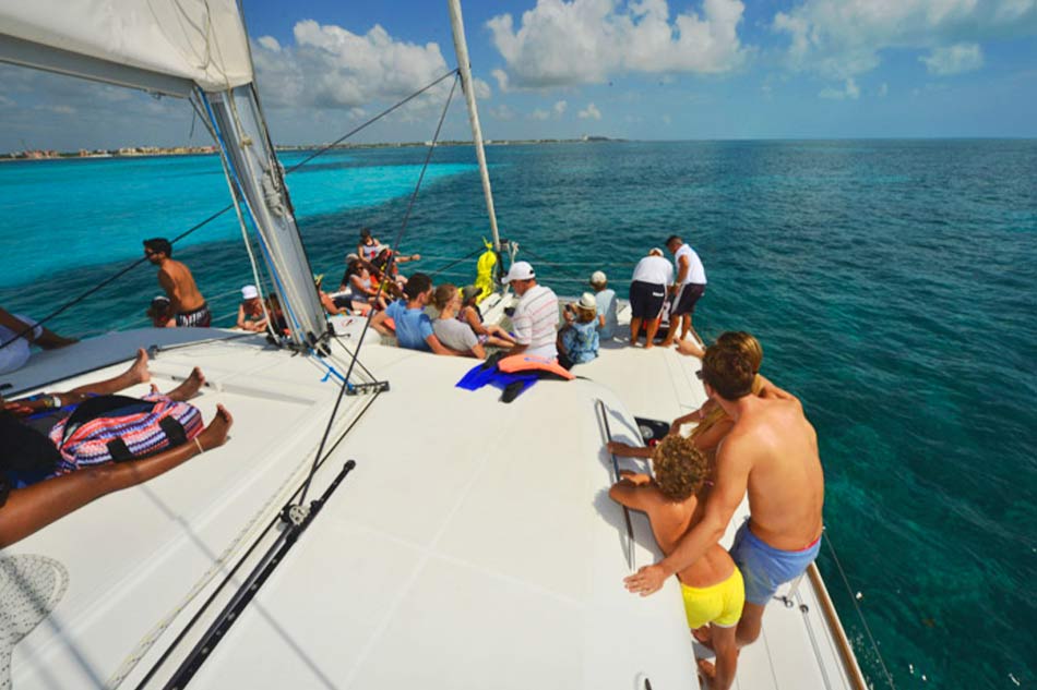 Board the catamaran that will take you to enjoy an adventure through the Caribbean and Isla Mujeres with an open bar on board, fun activities and a Caribbean party at full speed.