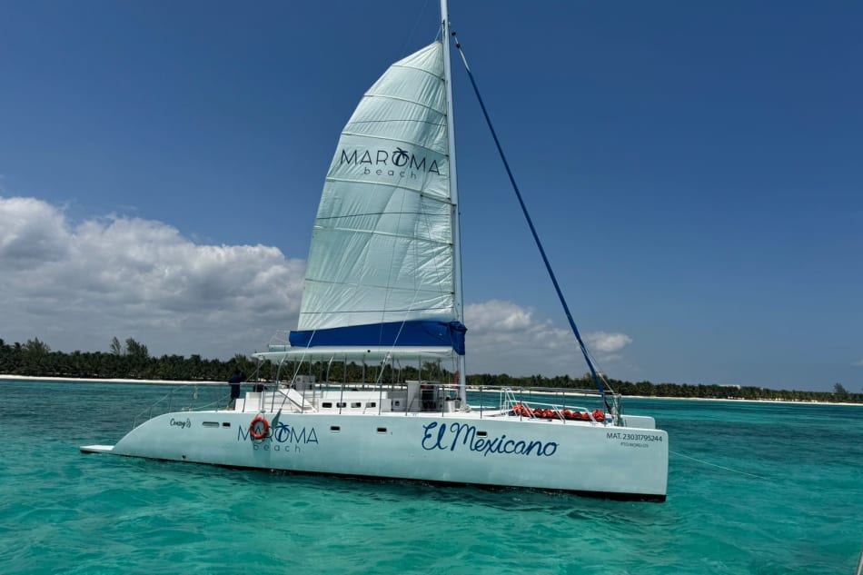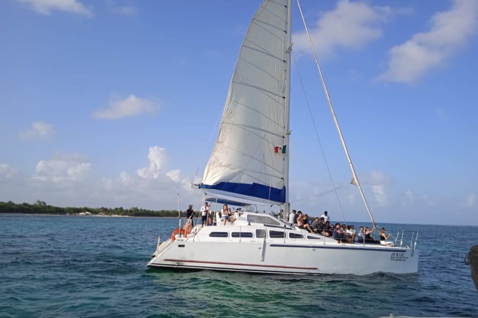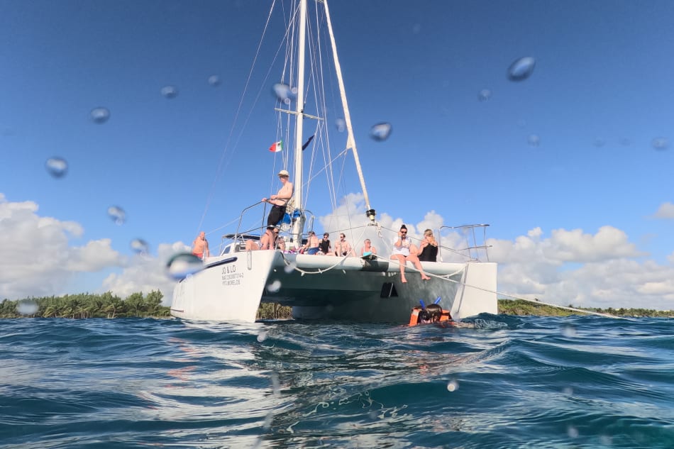 Explore the turquoise waters of the Mexican Caribbean aboard a catamaran and dive into two stunning snorkeling spots located on the world's second largest barrier reef. Swim among turtles, tropical fish, and colorful reefs. A perfect experience for sea lovers looking to relax, sunbathe, and enjoy marine life at its best.