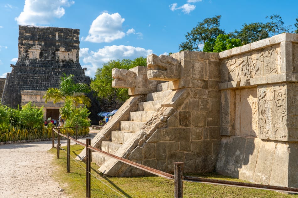 Your journey begins as you explore the imposing temples and structures of this ancient Mayan city. Standing before the majestic Temple of Kukulcán, you’ll be amazed by a masterpiece that reflects the civilization’s advanced astronomical and architectural knowledge. As you walk through the site, you’ll discover iconic landmarks such as the Ball Court, the Temple of the Warriors with its emblematic Chac Mool statue, and the Thousand Columns Market—each one filled with stories and secrets of the fascinating pre-Hispanic world.